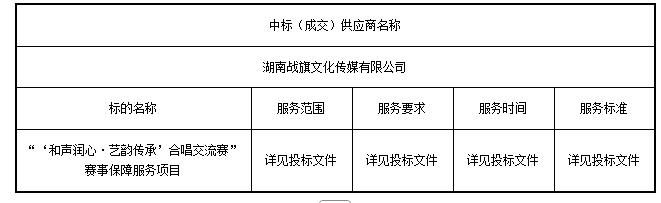 “‘和聲潤心·藝韻傳承’合唱交流賽”賽事保障服務項目中標(成交)結果公告