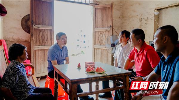 湖南出版投資控股集團(tuán)黨委書(shū)記、董事長(zhǎng)、中南出版?zhèn)髅郊瘓F(tuán)股份有限公司董事長(zhǎng)彭玻(左二)走進(jìn)結(jié)對(duì)幫扶對(duì)象家中,仔細(xì)詢問(wèn)脫貧致富中的實(shí)際困難。